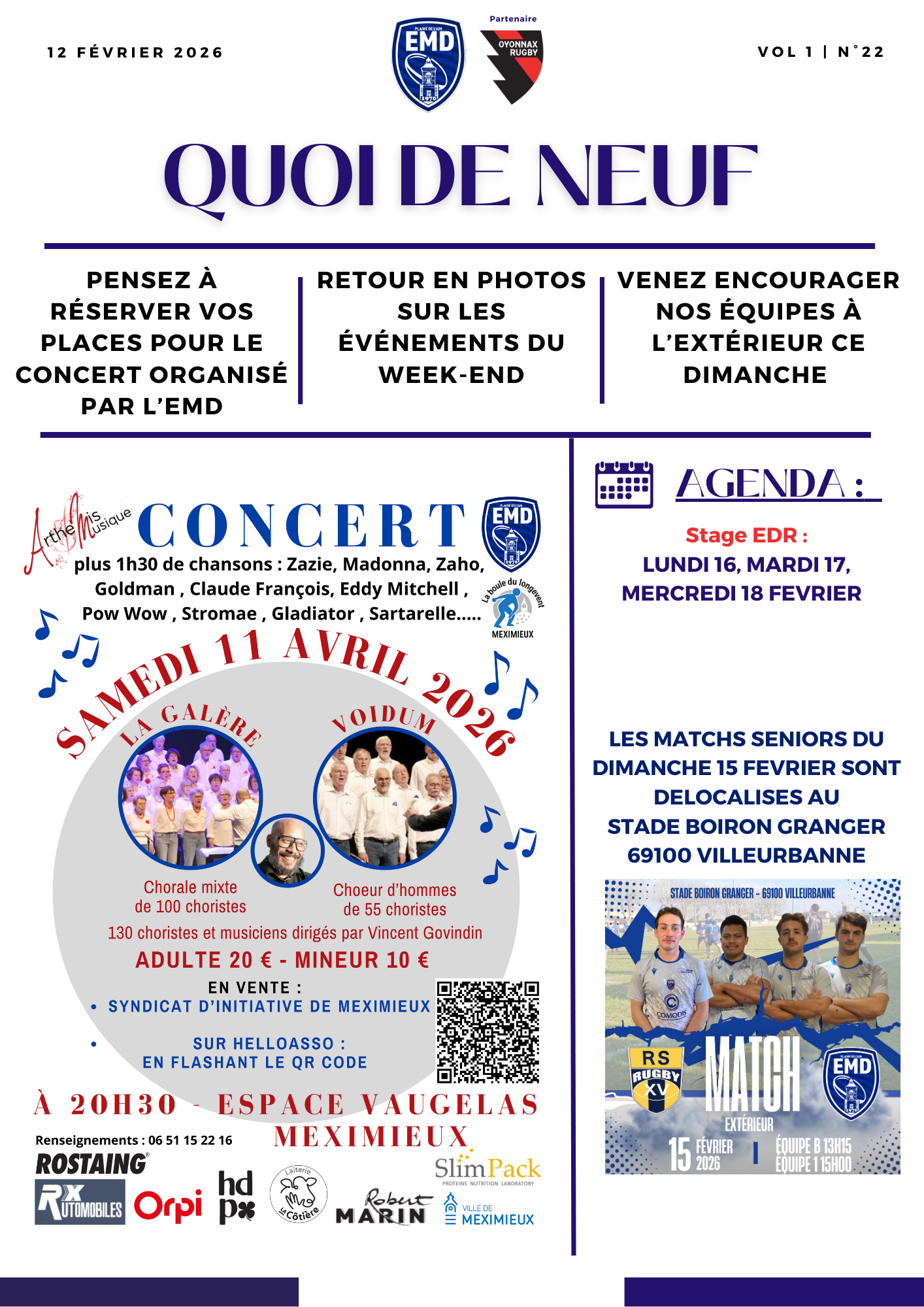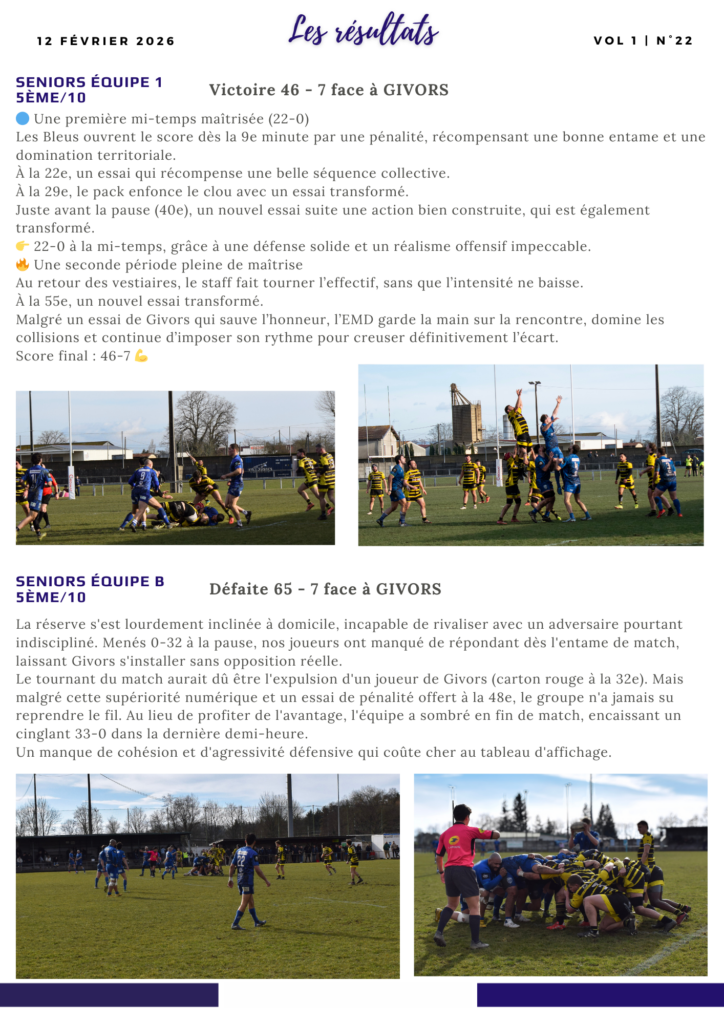 CHAQUE SEMAINE DÉCOUVREZ LE QUOI DE 9 Sortie le Jeudi soir sur FACEBOOK Actualités Quoi de 9 à l’EMD Manifestations Le club Historique Le Bureau Le stade Partenaires Nos partenaires Devenir partenaires QUOI DE 9 À L'EMD